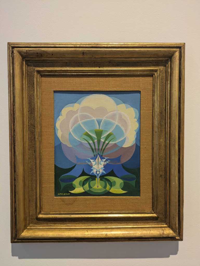 During and after the war, with Boccioni dead, Balla becomes the main focus of the exhibition. We see curator Simongini’s speciality come to the fore. In this period Balla enters a fully abstract style. I wasn’t aware of this fervour for abstraction in Italy at this time, but Balla and a group of younger artists wished to “reconstruct the world” in an analogous abstract visual language that would communicate the real truth of the universe. He was joined by a generation of younger artists, like the playful Fortunato Depero and the thoughtful Julius Evola.