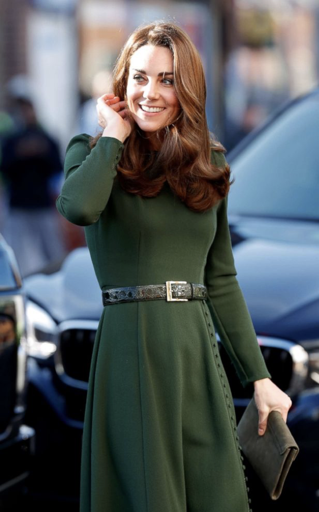 Kate doesn’t wear green a lot, but she did for this Beulah coat in January 2019. I particularly like the dark green as opposed to a lighter one, as well as the buttons and the belt.