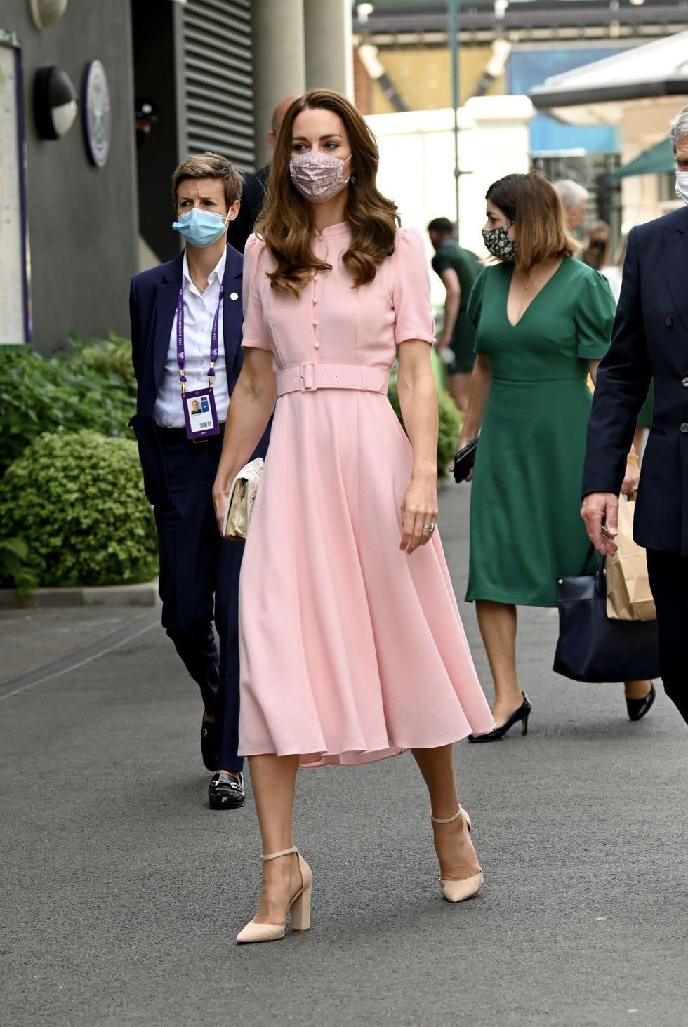 Pink is my favourite colour, baby pink in particular. Kate once again won the Wimbledon style stakes with this very girly Beulah dress. I love the buttons and upturned collar, which give it a slightly vintage look. She wore this dress again to a Young V&A opening in 2023.