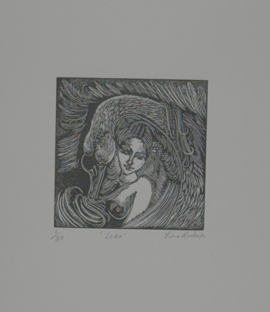 We also have Leda and the Swan, proudly taking its space within the Leda and the Swan tradition, next to Eric Gill and Correggio or Cezanne. But Fiona’s Leda is almost mystical, with the swan all around her, with the long, perfect lines encapsulating it.