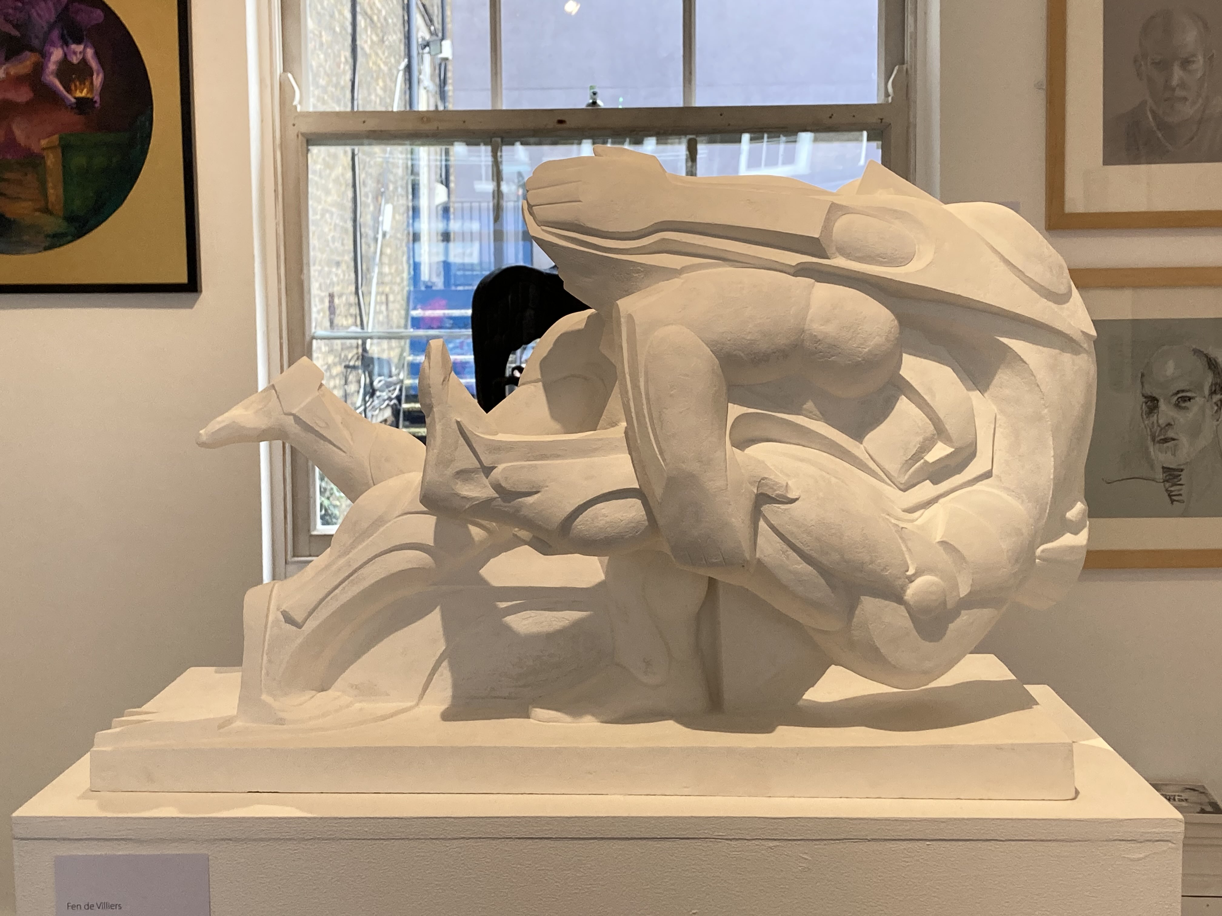 This wasn’t the only hallmark of the exhibition. Besides paintings, there were sculptures from some known names: Fen de Villiers and Ferro. Fen’s Tackle was deliciously dynamic with sharp, quasi-futurist shapes and movement that practically caused vibrations in the air. This was well paired with Matthew Fall Mckenzie’s acrylic painting under the same name, which embodied sharp bright colours, shades of yellow and orange, to make a perfectly accompanying piece, creating a marriage of candid colour and sharp shapes.